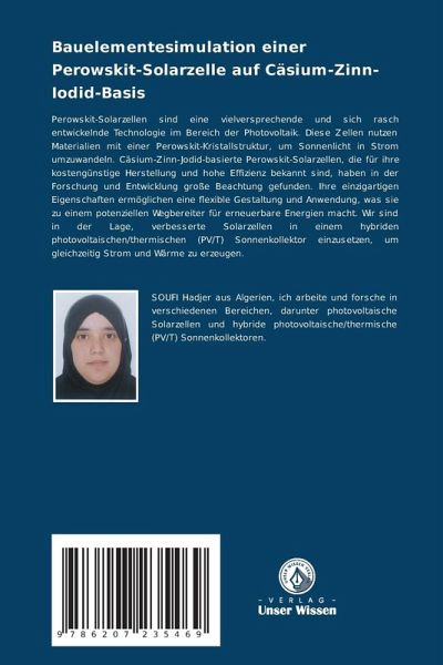 Perowskit-Solarzellen sind eine vielversprechende und sich rasch entwickelnde Technologie im Bereich der Photovoltaik. Diese Zellen nutzen Materialien mit einer Perowskit-Kristallstruktur, um Sonnenlicht in Strom umzuwandeln. Cäsium-Zinn-Jodid-basierte Perowskit-Solarzellen, die für ihre kostengünstige Herstellung und hohe Effizienz bekannt sind, haben in der Forschung und Entwicklung große Beachtung gefunden. Ihre einzigartigen Eigenschaften ermöglichen eine flexible Gestaltung und Anwendung, was sie zu einem potenziellen Wegbereiter für erneuerbare Energien macht. Wir sind in der Lage, verbesserte Solarzellen in einem hybriden photovoltaischen/thermischen (PV/T) Sonnenkollektor einzusetzen, um gleichzeitig Strom und Wärme zu erzeugen.