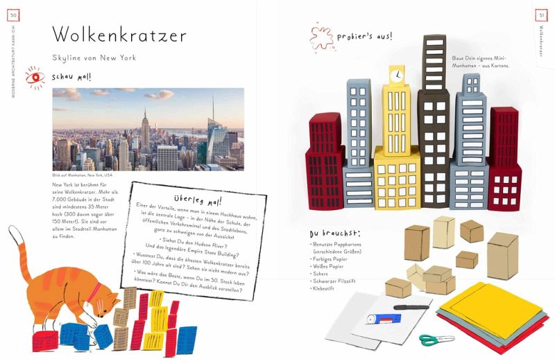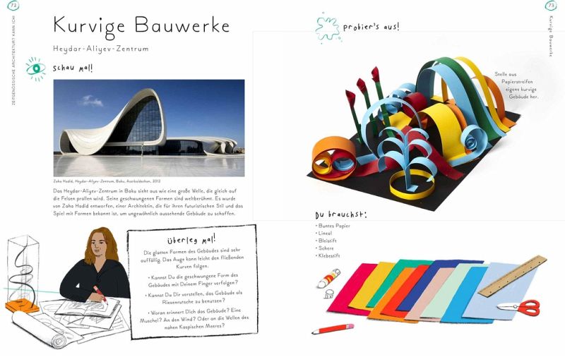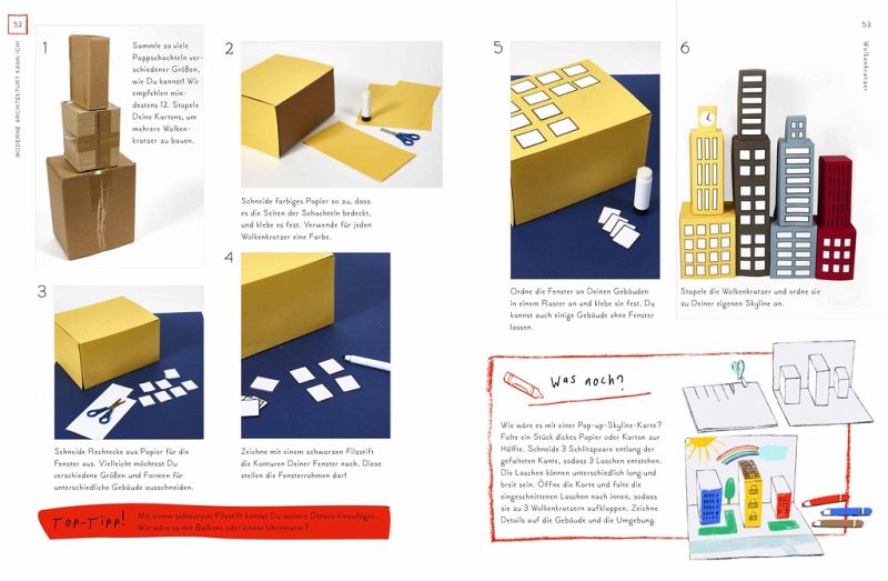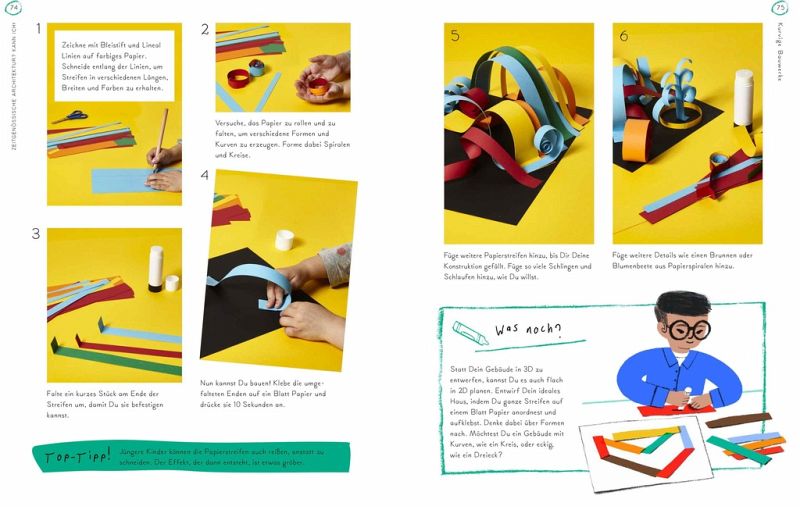 Basteln, Bauen, Staunen: Meilensteine der Architekturgeschichte, die die Kreativität weckenEin schwimmendes Haus? Oder doch ein Spaghetti-Tempel? In der Geschichte der Menschheit hat es schon viele Bauten gegeben, die über Generationen fasziniert und inspiriert haben. Vom Steinkreis in Stonehenge bis zum Sydney Opera House: Zwanzig dieser architektonischen Meisterleistungen hat Joséphine Seblon in Bastelideen für Kinder ab 4 Jahren umgewandelt. Mit ein bisschen Fantasie, Geschick und Kleber wird so aus dem Inhalt der Bastelkiste ein tolles Bauwerk!- Schritt-für-Schritt-Anleitungen für Mini-Architekten, illustriert von Robert Sae-Heng- Antike, moderne und zeitgenössische Architektur für Kinder erklärt- Berühmte Bauwerke mit einfachen Materialien nachbauen- Ein Bastelbuch für einen neuen Blick auf bauliche Strukturen- Geeignet für Bastelstunden zu Hause oder Kunstprojekte in Grundschule und KitaDas Activity-Buch für zukünftige Baumeister und ArchitektinnenEine mittelalterliche Festung, hergestellt im Kinderzimmer? Ein Wolkenkratzer, wie sie in New York stehen? Mit den einfachen Anleitungen in diesem Bastelbuch gelingen berühmte Gebäude im Miniatur-Format. Das Basteln mit Karton, Papier und anderen Materialien macht nicht nur Spaß: Es fördert auch die Kreativität und Fingerfertigkeit. Ob als Kinderbeschäftigung an verregneten Nachmittagen oder für ein Kunstprojekt in der Grundschule - diese 20 Bastelideen sorgen garantiert für Freude an Architektur!