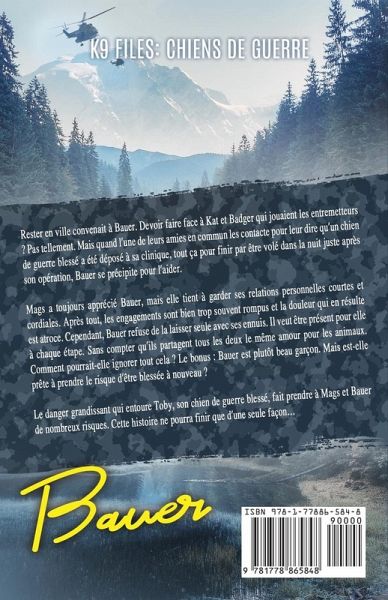 Rester en ville convenait à Bauer. Devoir faire face à Kat et Badger qui jouaient les entremetteurs ? Pas tellement. Mais quand l'une de leurs amies en commun les contacte pour leur dire qu'un chien de guerre blessé a été déposé à sa clinique, tout ça pour finir par être volé dans la nuit juste après son opération, Bauer se précipite pour l'aider. Mags a toujours apprécié Bauer, mais elle tient à garder ses relations personnelles courtes et cordiales. Après tout, les engagements sont bien trop souvent rompus et la douleur qui en résulte est atroce. Cependant, Bauer refuse de la laisser seule avec ses ennuis. Il veut être présent pour elle à chaque étape. Sans compter qu'ils partagent tous les deux le même amour pour les animaux. Comment pourrait-elle ignorer tout cela ? Le bonus Bauer est plutôt beau garçon. Mais est-elle prête à prendre le risque d'être blessée à nouveau ? Le danger grandissant qui entoure Toby, son chien de guerre blessé, fait prendre à Mags et Bauer de nombreux risques. Cette histoire ne pourra finir que d'une seule façon...