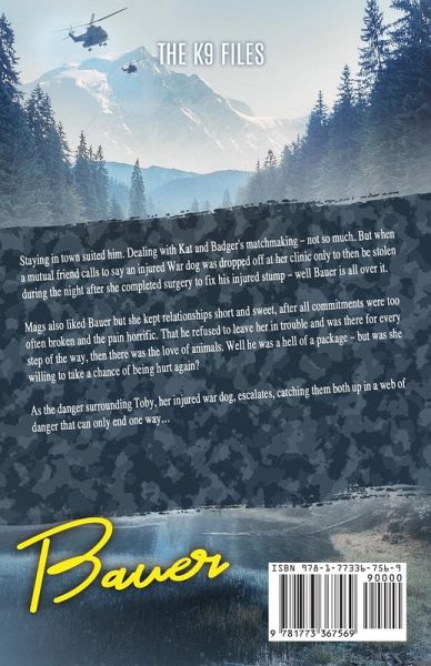 Staying in town suited Bauer. Dealing with Kat and Badger's matchmaker? Not so much. But, when a mutual friend calls to say an injured War Dog was dropped off at her clinic-only to then be stolen during the night after she completed surgery to fix his injured stump-well, Bauer is all over it. Mags always liked Bauer, but she kept her personal relationships short and sweet. After all, commitments were too often broken and the resultant pain horrific. However, Bauer refuses to leave her in trouble and is here for her every step of the way; plus they share the love of animals. How can she ignore all that? Plus he is a hell of a package. But is she willing to take a chance on being hurt again? The escalating danger-surrounding Toby, her injured War Dog-catches Mags and Bauer in a web of risk that can only end one way ...