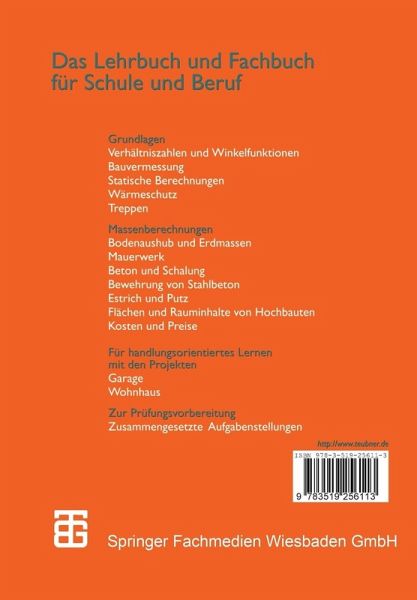 Das Buch vermittelt mathematisch-technisches Know-how für die Bauplanung, -durchführung und -abrechnung mit praxisgerechten Beispielen und Übungen für alle Berufe im Hoch- und Ausbau sowie Einzelberufe Maurer, Beton- und Stahlbetonbauer, Stuckateur und Estrichleger.