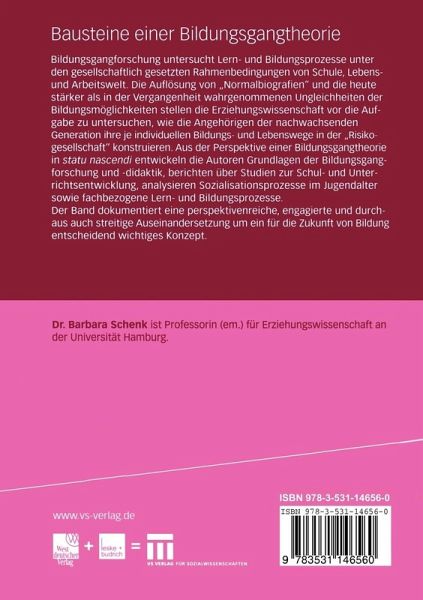 Einführung.- 1 Grundlagen.- Die Bildungsgangforschung als Rahmen für die Weiterentwicklung der allgemeinen Didaktik.- Bildung und Biographie. Zur Bedeutung der bildungstheoretisch fundierten Biographieforschung für die Bildungsgangforschung.- 2 Schul- und Unterrichtsentwicklung.- Lernende Lehrer - Professionalisierung und Schulentwicklung im Lichte der Bildungsgangforschung.- Gelegenheitsstrukturen zum Kompetenzerwerb und zur Identitätskonstruktion. Ein Kontextualisierungskonzept bildungsgangbezogener Lernprozesse.- Gelegenheitsstrukturen des Lernens in Bildungsgängen: die Lernorte Schule und Betrieb.- 3 Sozialisationsprozesse.- Statuspassage Erwachsenwerden und weitere Einflüsse auf die Bildungsprozesse von Schülerinnen und Schülern.- Bildungsgänge jenseits der Normalbiographie.- 4 Lern- und Bildungsprozesse am Beispiel fachlichen Lernens.- Migrationsbedingte Mehrsprachigkeit und schulischer Fremdsprachenunterricht. Ein Beitrag zur Bildungsgangforschung aus fremdsprachen-didaktischer Perspektive.- Mathematiklernen und sprachliche Bildung. Eine interaktionistische Perspektive auf dialogisch strukturierte Lernprozesse im Grundschul-Mathematikunterricht unter Berücksichtigung der sprachlichkulturellen Diversität der Lernenden.- Was heißt "Entwicklung von Reflektiertem Geschichtsbewusstsein" in fachdidaktischer Theorie und in unterrichtlicher Praxis?.- Zur Entwicklung und Genese fachbezogener Selbstkonzepte: Effekte sozialer und dimensionaler Vergleiche.- Intuitive Vorstellungen und explizite Reflexion - Bewusste und unbewusste Prozesse des Denkens.- Intuitive Vorstellungen und explizite Reflexion - Zur Bedeutung von Alltagsphantasien in Lernprozessen zur Bioethik.- 5 Deutung und Bearbeitung von Entwicklungsaufgaben.- Entwicklungsaufgaben und Schule.-Deutung und Bearbeitung von Entwicklungsaufgaben aus der Perspektive des kulturellen Systems der Zweigeschlechtlichkeit.- Bearbeitung von Entwicklungsaufgaben: Selbstregulation von Zielbindung und Zielablösung.- Lernprozesse und Entwicklungsaufgaben.- Verzeichnis der Autorinnen und Autoren.