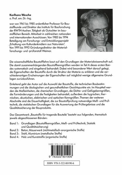 Baustoffe sind Werkstoffe, aus denen Bauwerke hergestellt werden. Bis zum Beginn des 19. Jahrhunderts wurden für tragende Bauteile über Jahrtausende die gleichen Baustoffe verwendet: Natursteine, Mörtel, Beton aus puzzolanischen Bindemitteln, Ziegel, Lehm und Holz, in geringen Mengen auch Eisen und Stahl. Das 19. Jahr hundert ist durch die Entwicklung des Gußeisen- und Stahlbaues, das 20. Jahr hundert durch die Entwicklung des Beton-, Stahlbeton- und Spannbeton baues gekennzeichnet. Alle diese als klassisch zu bezeichnenden Baustoffe wurden bis vor nicht allzu langer Zeit nach handwerklichen Regeln, die auf zum Teil Jahrhunderte alter Erfahrung beruhten, verarbeitet und angewendet. Bei traditionellen Kon struktionen und Beachtung dieser Regeln war mit ausreichender Dauerhaftigkeit der Bauwerke ohne vorzeitige Schäden zu rechnen. Wärme-und Schallschutz und meist auch Verformungen brauchten nicht besonders berücksichtigt zu werden, da sie den Bedürfnissen ohne Auflagen entsprachen.Baumeister und Bauhandwerker arbeiteten meist ihr ganzes Leben lang mit den gleichen, ihnen vertrauten Baustoffen. Besonders in den letzten Jahrzehnten sind nun viele neue Stoffe entwickelt bzw. im Bauwesen eingesetzt worden, vor allem Leichtbaustoffe (Aluminium, Leichtbeton), Dämmstoffe, Bautenschutzmittel und Kunststoffe. Aus ihnen ergaben sich neue Konstruktionen (z. B. Traglufthallen, zeltähnliche Konstruktionen aus Kunststoffen), oder die Baustoffe mußten auf neue Konstruktionsmöglichkeiten umgestellt werden. Hier spielt besonders der Fertigteilbau eine Rolle, bei dem man immer mehr zum elementierten Bauen übergeht, d. h. zu anpassungsfähigen und wandelbaren Struk turen aus serienmäßigen Einzelteilen. Dies führt zu neuen Überlegungen und Metho den in Planung und Fertigung.