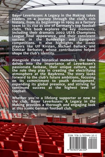 Bayer Leverkusen: A Legacy in the Making takes readers on a journey through the club's rich history, from its beginnings in 1904 as a factory team to its rise as one of Germany's top football clubs. This book explores the key moments, including their dramatic 2002 UEFA Champions League final appearance, and their consistent success in the Bundesliga and European competitions. It also highlights the iconic players like Ulf Kirsten, Michael Ballack, and Dimitar Berbatov, whose contributions helped shape the club's identity. Alongside these historical moments, the book delves into the importance of Leverkusen's passionate fanbase, their unique culture, and the role they play in creating the electrifying atmosphere at the BayArena. The story looks forward to the club's future ambitions, focusing on its commitment to youth development, expanding its global presence, and striving for continued success at the highest level of football. Whether you're a lifelong supporter or new to the club, Bayer Leverkusen: A Legacy in the Making provides a thorough and engaging look at this iconic German football club.