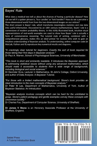 What does a medical test tell us about the chances of having a particular disease? How can we tell if a spoken phrase is, 'four candles' or 'fork handles'? How do we a perceive a three-dimensional world from from the two-dimensional images on our retinas? The short answer is Bayes' rule, which transforms meaningless statistics and raw data into useful information. Discovered by an 18th century mathematician and preacher, Bayes' rule is a cornerstone of modern probability theory. In this richly illustrated book, intuitive visual representations of real-world examples are used to show how Bayes' rule is actually a form of commonsense reasoning. The tutorial style of writing, combined with a comprehensive glossary, makes this an ideal primer for novices who wish to gain an intuitive understanding of Bayesian analysis. As an aid to understanding, online computer code (in MatLab, Python and R) reproduces key numerical results and diagrams.
