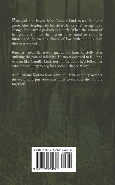 Party-girl and bayou babe Camilla Lind treats life like a game. After sleeping with her sister's fiancé, she's struggling to change, but karmic payback is a bitch. When the actions of her past crash into the present, they stand to ruin her future...and destroy any chance of love with the only man she's ever wanted. Rancher Jared Richardson guards his heart carefully after suffering the pain of infidelity. He never expected to fall for a woman like Camilla Lind, nor did he think he'd follow her across the country to beg for a second chance at love. As Hurricane Katrina bears down on them, can they weather the storm and put aside past hurts to embrace their future together?