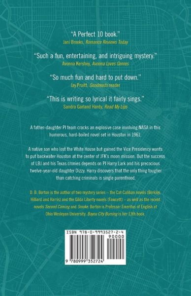It's hard to be hard-boiled when your biggest fan and toughest critic is your twelve-year-old daughter. Comedy meets mystery and history in the summer of 1961, when Houston is still a cowboy backwater - overheated, under-air conditioned, and plagued by daily downpours that bring the Gulf of Mexico ashore and wash crawdads down suburban streets. P.I. Harry Lark is running a detective agency out of a seedy downtown office building when a well-dressed out-of-towner entangles him in President Kennedy's moon mission. LBJ and his Texas cronies are plotting to get NASA to build a space center in Houston, but somebody is out to stop them. Harry decides that he's working for the wrong side and gives his client the brush-off, but when a dead body shows up in his office, he discovers that he can't walk away. Then Harry is hired to clear a local civil rights group of involvement in a string of firebombings. Meanwhile, Dizzy and her pals are running a lost and found out of a suburban garage when they're hired to find a missing father who is supposed to be dead and buried. What's the thread connecting a dead mobster, a missing father, torched buildings, and NASA's moon mission? Harry and Dizzy race to find out before the city goes up in flames. If you like stylish, witty writers like Raymond Chandler, Robert B. Parker, Lisa Scottoline, and Elmore Leonard, you'll see why Romance Reviews Today's Jani Brooks rates Bayou City Burning "a Perfect 10 book." You may agree with blogger Brooke Gunderman when she calls Bayou City Burning "one of my new favorite books!" Will Harry and Dizzy save the city? Will Harry survive a month of single parenthood? Buy Now to find out.