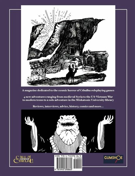The stars are right for a new magazine dedicated to adventuring against the Cthulhu Mythos! Issue #1 includes: 3 adventures dual-statted for Call of Cthulhu 7th edition and GUMSHOE (Trail of Cthulhu/The Fall of DELTA GREEN) A group of teenagers must survive the night in an abandoned school (Modern Era) A team of investigators must determine the truth behind a massacre of Vietnamese civilians by American soldiers (US-Vietnam War) A band of secret agents must discover what has been smuggled into Damascus (Dark Ages) 1 solo adventure set in the Miskatonic University library Tables for running random chases A overview of every Cthulhu mythos RPG release of 2017 Classic Cthulhu RPG reviews An interview with Rogue Cthulhu An interview with Chris Spivey Advice, history, comics, and more!