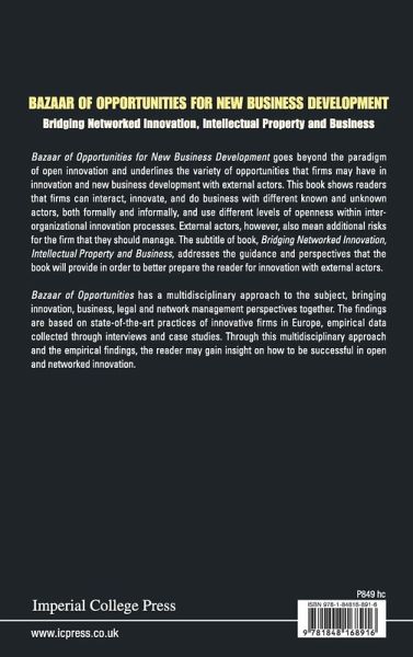 Bazaar of Opportunities goes beyond the paradigm of open innovation and underlines the variety of opportunities that firms may have in the innovation and new business development with external actors. This book shows readers that firms can interact, innovate, and make business with different known and unknown actors, both formally and informally, and use different levels of openness within inter-organizational innovation processes. External actors, however, also mean additional risks for the firm that they should manage. The subtitle of book, Bridging Networked Innovation, Intellectual Property and Business, addresses the guidance and perspectives that the book will provide in order to be better prepare the reader for innovation with external actors. Bazaar of Opportunities has a multidisciplinary approach to the subject, bringing innovation, business, legal and network management perspectives together. The findings are based on state-of-the-art practices of innovative firms in Europe, empirical data collected by interviews and case studies. Through this multidisciplinary approach and the empirical findings, the reader may gain insight on how to be successful in open and networked innovation.