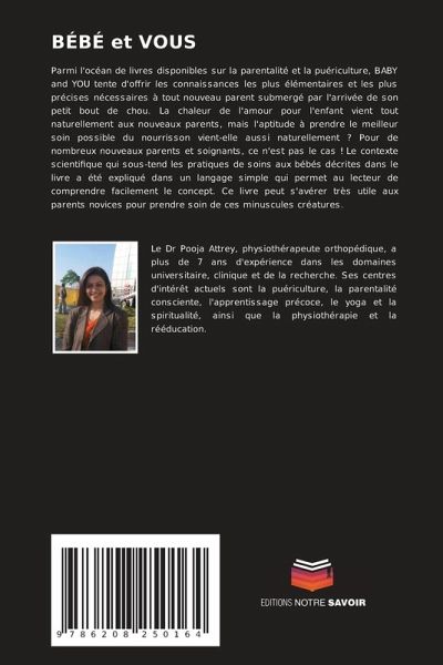 Parmi l'océan de livres disponibles sur la parentalité et la puériculture, BABY and YOU tente d'offrir les connaissances les plus élémentaires et les plus précises nécessaires à tout nouveau parent submergé par l'arrivée de son petit bout de chou. La chaleur de l'amour pour l'enfant vient tout naturellement aux nouveaux parents, mais l'aptitude à prendre le meilleur soin possible du nourrisson vient-elle aussi naturellement ? Pour de nombreux nouveaux parents et soignants, ce n'est pas le cas ! Le contexte scientifique qui sous-tend les pratiques de soins aux bébés décrites dans le livre a été expliqué dans un langage simple qui permet au lecteur de comprendre facilement le concept. Ce livre peut s'avérer très utile aux parents novices pour prendre soin de ces minuscules créatures.