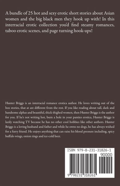 A bundle of 25 hot and sexy erotic short stories about Asian women and the big black men they hook up with! In this interracial erotic collection you'd find steamy romances, taboo erotic scenes, and page turning hook-ups!