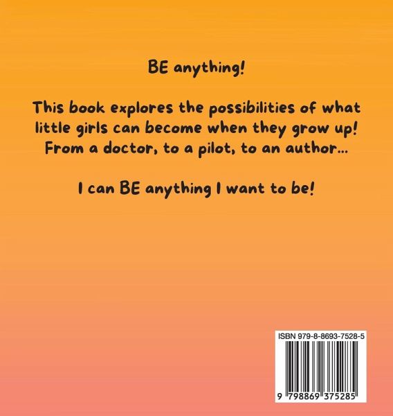 BE anything! This book explores the possibilities of what little girls can become when they grow up! From a doctor, to a pilot, to an author... I can BE anything I want to be!