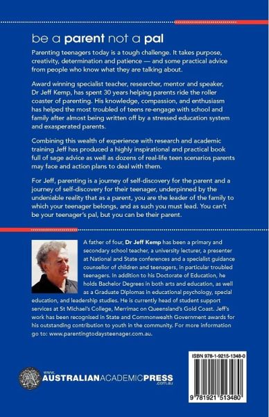 Parenting teenagers today is a tough challenge. It takes a lot of effort and some practical advice from people who know what they are talking about. Award winning specialist teacher, researcher, mentor and speaker, Dr Jeff Kemp, has spent 30 years helping parents ride the roller coaster of parenting. Combining this wealth of experience with research and academic training Jeff has produced a highly inspirational and practical book full of sage advice as well as dozens of real-life teen scenarios parents may face and action plans to deal with them.