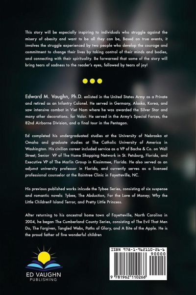 This story will be especially inspiring to individuals who struggle against the misery of obesity and want to be all they can be, Based on true events, it involves the struggle experienced by two people who develop the courage and commitment to change their lives by taking control of their minds and bodies, and connecting with their spirituality. Be forwarned that some of the story will bring tears of sadness to the reader's eyes, followed by tears of joy!