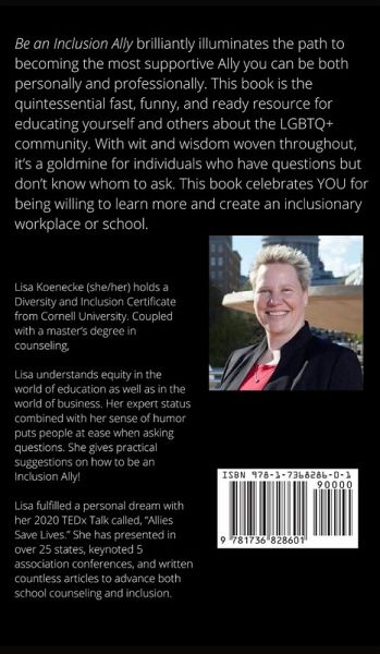 Be an Inclusion Ally brilliantly illuminates the path to becoming the most supportive Ally you can be both personally and professionally. This book is the quintessential fast, funny, and ready resource for educating yourself and others about the LGBTQ+ community. With wit and wisdom woven throughout, it's a goldmine for individuals who have questions, but don't know whom to ask. This book celebrates YOU for being willing to learn more and create an inclusionary workplace or school. "Be an Inclusion Ally: ABCs of LGBTQ" is a practical guide to understanding and supporting family, friends, colleagues, or anyone in the LBGTQ+ community. Written in an easy to follow, friendly style, this guide will provide concrete steps to those seeking to become an ally or an Ally. Ideal for personal learning, shared exploration, and instruction, this is an invaluable resource. Not to be missed! Highly recommended. What you'll find inside: ABCs of LGBTQ-a primer of information to answer your questions including "What does this mean?" "How can I celebrate with you?" or "Where did this come from?"Resources to support further learning about the issues, vocabulary and events in the LGBTQ+ world. Quotations to share and ponder. Calendar of events to celebrate LGBTQ+ as an Ally. Wisdom and lots of humor.