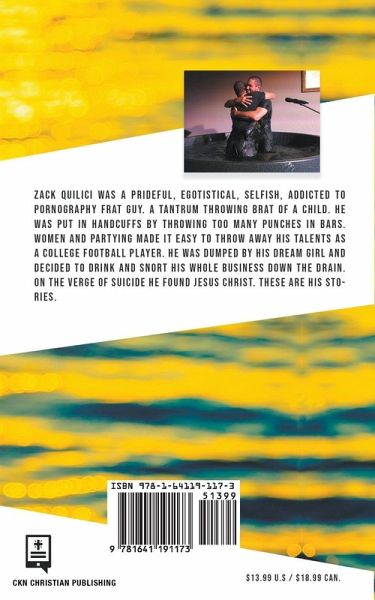 Zack Quilici was a prideful, egotistical, selfish, addicted to pornography frat guy. A tantrum throwing brat of a child. He was put in handcuffs by throwing too many punches in bars. Women and partying made it easy to throw away his talents as a college football player. He was dumped by his dream girl and decided to drink and snort his whole business down the drain. On the verge of suicide he found Jesus Christ. These are his stories.