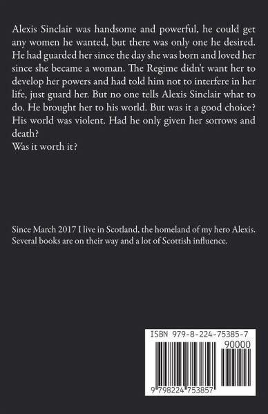 Alexis Sinclair was handsome and powerful, he could get any women he wanted, but there was only one he desired. He had guarded her since the day she was born and loved her since she became a woman. The Regime didn't want her to develop her powers and had told him not to interfere in her life, just guard her. But no one tells Alexis Sinclair what to do. He brought her to his world. But was it a good choice? His world was violent. Had he only given her sorrows and death? Was it worth it?