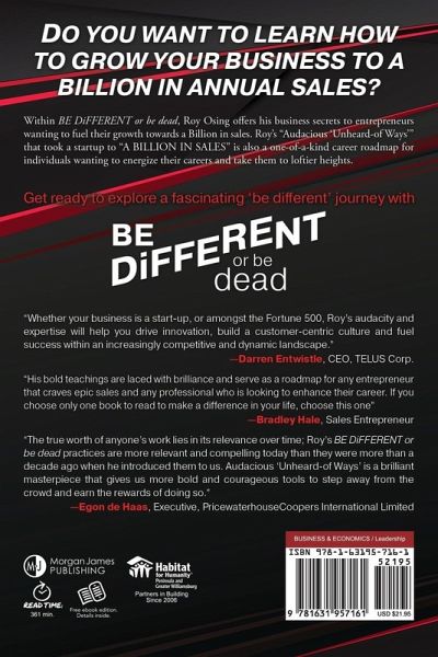 Roy Osing is a former president, CMO and entrepreneur with over 40 years of successful and unmatched executive leadership experience in virtually all aspects of business. He is a passionate blogger, keen content marketer, dedicated teacher and mentor to young professionals. Roy is also an accomplished business adviser using his own proven creative methods and practices. He is the author of the audacious book series BE DiFFERENT or be dead. Roy is devoted to inspiring leaders, entrepreneurs and organizations to stand apart from the boring crowd and achieve their true potential. He resides in British Columbia.