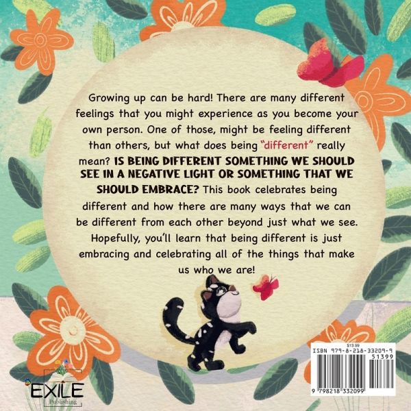 Growing up can be hard! There are many different feelings that you might experience as you become your own person. One of those, might be feeling different than others, but what does being "different" really mean? Is being different something we should see in a negative light or something that we should embrace? This book celebrates being different and how there are many ways that we can be different from each other beyond just what we see. Hopefully, you'll learn that being different is just embracing and celebrating all of the things that make us who we are!