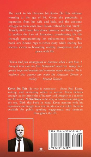 The crack in his Universe hit Kevin Du Toit without warning at the age of 46. Given the pandemic, a separation from his wife and kids, and the constant struggle to make ends meet, Kevin realized he was "stuck." Tragedy didn't keep him down, however, and Kevin began to explore the Law of Attraction, transforming his life through reprogramming his subconscious mind. This book airs Kevin's rags-to-riches story while sharing his success secrets to becoming wealthy, prosperous, and at peace with life.