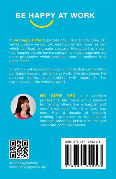 Have you ever wondered about the following questions? Is it possible to be happy at work? Is it important to be happy at work? Can I ever be happy at work? The answers to all these questions is a resounding yes and in Be Happy at Work, professional life coach Ng Siew Yen writes on how we can become happier and more resilient which can lead to greater career success. Research has shown that happier people have a competitive advantage and are more productive which enables them to achieve their goals faster. This book will elaborate on key concepts that can facilitate our happiness and resilience at work. She also shares her personal stories and insights with regard to her experiences from working in different companies and with various types of stakeholders in the working world. American writer Annie Dillard once famously said, "How we spend our days is how we spend our lives." On that note, most of us will spend almost a third of our lives at work. Therefore, it would be hard to be happy in life if we are not happy at work. Here are the chapter titles that you can expect from this book: Chapter 1: Why should I be happy at work? Chapter 2: How can I be happy at work? Chapter 3: What is our purpose at work Chapter 4: When life is unfair, don't play a victim, rise about it Chapter 5: Failing our way to success Chapter 6: How to manage stress at work Chapter 7: How to stay positive at work Chapter 8: How to build relationships at work Chapter 9: How to deal with difficult people at work Chapter 10: Happiness habits at work Chapter 11: Take care of our mental and physical self Chapter 12: How to maximise productivity at work In short, don't waste anymore time being unhappy and stressed at work, find out more on how you can Be Happy at Work by reading this book!