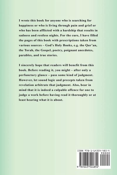 I wrote this book for anyone who is searching for happiness or who is living through pain and grief or who has been afflicted with a hardship that results in sadness and restless nights. This book says the following: Rejoice and be happy; remain positive and at peace. Indeed it says this as well: Live life as it should be lived - wholesomely, happily, and productively. This book diagnoses the mistakes we make that go against the intrinsic logic that we - as human beings - have been endowed with (but which we tend to forget when we do not follow correct guidance), whether those mistakes are in our thinking or in our dealings. I sincerely hope that readers will benefit from this book. Before reading it, you might - after only a perfunctory glance - pass some kind of judgment. However, let sound logic and precepts taken from revelation arbitrate that judgment.
