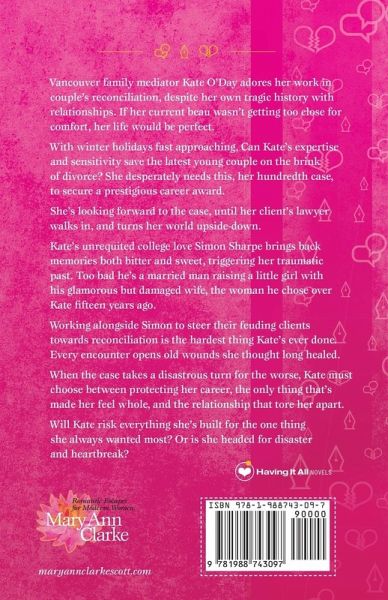Vancouver family mediator Kate O'Day adores her work in couple's reconciliation, despite her own tragic history with relationships. If her current beau wasn't getting too close for comfort, her life would be perfect. With winter holidays fast approaching, Can Kate's expertise and sensitivity save the latest young couple on the brink of divorce? She desperately needs this, her hundredth case, to secure a prestigious career award. She's looking forward to the case, until her client's lawyer walks in, and turns her world upside-down. Kate's unrequited college love Simon Sharpe brings back memories both bitter and sweet, triggering her traumatic past. Too bad he's a married man raising a little girl with his glamorous but damaged wife, the woman he chose over Kate fifteen years ago. Working alongside Simon to steer their feuding clients towards reconciliation is the hardest thing Kate's ever done. Every encounter opens old wounds she thought long healed. When the case takes a disastrous turn for the worse, Kate must choose between protecting her career, the only thing that's made her feel whole, and the relationship that tore her apart. Will Kate risk everything she's built for the one thing she always wanted most? Or is she headed for disaster and heartbreak? Be Mine This Time was previously published as Reconcilable Differences.