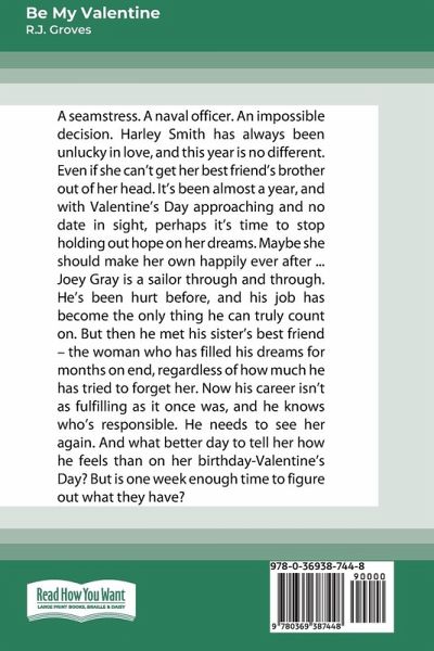 A seamstress. A naval officer. An impossible decision. Harley Smith has always been unlucky in love, and this year is no different. Even if she can't get her best friend's brother out of her head. It's been almost a year, and with Valentine's Day approaching and no date in sight, perhaps it's time to stop holding out hope on her dreams. Maybe she should make her own happily ever after... Joey Gray is a sailor through and through. He's been hurt before, and his job has become the only thing he can truly count on. But then he met his sister's best friend - the woman who has filled his dreams for months on end, regardless of how much he has tried to forget her. Now his career isn't as fulfilling as it once was, and he knows who's responsible. He needs to see her again. And what better day to tell her how he feels than on her birthday-Valentine's Day? But is one week enough time to figure out what they have?