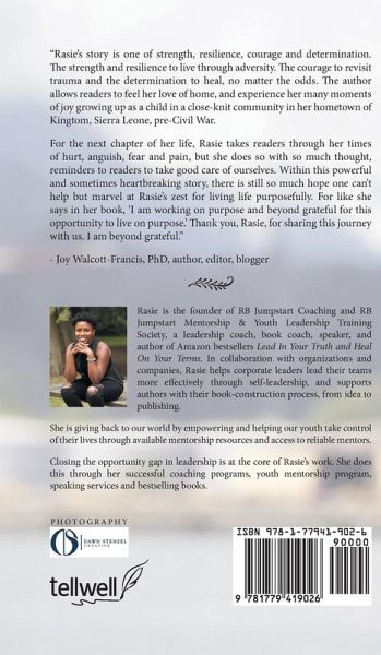 "Rasie's story is one of strength, resilience, courage and determination. The strength and resilience to live through adversity. The courage to revisit trauma and the determination to heal, no matter the odds. The author allows readers to feel her love of home, and experience her many moments of joy growing up as a child in a close-knit community in her hometown of Kingtom, Sierra Leone, pre-Civil War. For the next chapter of her life, Rasie takes readers through her times of hurt, anguish, fear and pain, but she does so with so much thought, reminders to readers to take good care of ourselves. Within this powerful and sometimes heartbreaking story, there is still so much hope one can't help but marvel at Rasie's zest for living life purposefully. For like she says in her book, 'I am working on purpose and beyond grateful for this opportunity to live on purpose.' Thank you, Rasie, for sharing this journey with us. I am beyond grateful." - Joy Walcott-Francis, PhD, author, editor, blogger