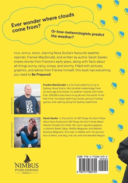 Ever wonder where clouds come from? Or how meteorologists predict the weather? This brand new book, starring Nova Scotia's favourite weather reporter, Frankie MacDonald, and written by author Sarah Sawler, shares stories from Frankie's early years, along with facts about all things sunny, rainy, snowy, and stormy. Filled with pictures, graphics, and advice from Frankie himself, this book has everything you need to Be Prepared!