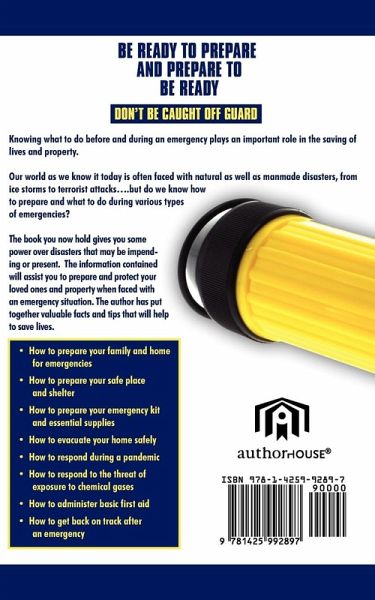 Knowing what to do before and during an emergency plays an important role in the saving of lives and property. Our world as we know it today is often faced with natural as well as manmade disasters, from ice storms to terrorist attacks..but do we know how to prepare and what to do during various types of emergencies? The book you now hold gives you some power over disasters that may be impending or present. The information contained will assist you to prepare and protect your loved ones and property when faced with an emergency situation. The author has put together valuable facts and tips that will help to save lives. ...... You will learn: · How to prepare your family and home for emergencies · How to prepare your safe place and shelter · How to prepare your emergency kit and essential supplies · How to evacuate your home safely · How to respond during a pandemic · How to respond to the threat of exposure to chemical gases · How to administer basic first aid · How to get back on track after an emergency