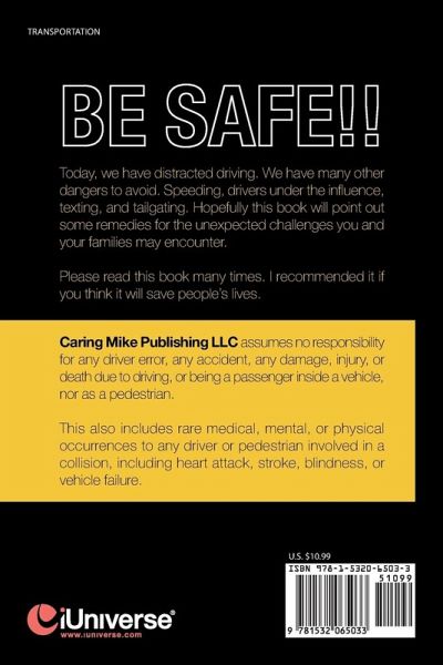 Today, we have distracted driving. We have many other dangers to avoid. Speeding, drivers under the influence, texting, and tailgating. Hopefully this book will point out some remedies for the unexpected challenges you and your families may encounter. Please read this book many times. I recommended it if you think it will save people's lives.