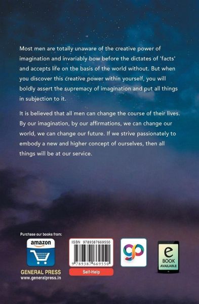 Most men are totally unaware of the creative power of imagination and invariably bow before the dictates of 'facts' and accepts life on the basis of the world without. But when you discover this creative power within yourself, you will boldly assert the supremacy of imagination and put all things in subjection to it. It is believed that all men can change the course of their lives. By our imagination, by our affirmations, we can change our world, we can change our future. If we strive passionately to embody a new and higher concept of ourselves, then all things will be at our service.…mehr