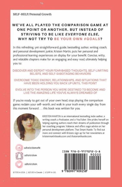 We've all played the comparison game at one point or another. But instead of striving to be like everyone else, why not try to be your own #GOALS? In this refreshing, yet straightforward, guide, bestselling author, writing coach, and personal development junkie, Kristen Martin, puts her personal and professional learning experiences on display for your benefit. Concise, witty, and relatable chapters make for an engaging and easy read, ultimately helping you to: - Discover and defeat your fear-based thoughts, self-limiting beliefs, and self-sabotaging behaviors - Overcome toxic energy, relationships, and situations that have been holding you back up until this point - Evolve into the person you were destined to become and live the amazing life you've always dreamed of If you're ready to get out of your own head, stop playing the comparison game, reclaim your self-worth, and walk in your truth every single day from this moment forward . . . this book was written for you.