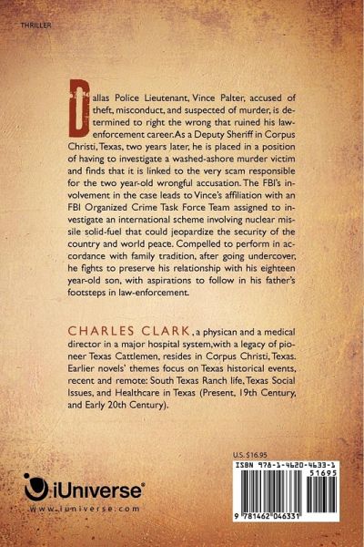 Dallas Police Lieutenant, Vince Palter, accused of theft, misconduct, and suspected of murder, is determined to right the wrong that ruined his law-enforcement career. As a Deputy Sheriff in Corpus Christi, Texas, two years later, he is placed in a position of having to investigate a washed-ashore murder victim and finds that it is linked to the very scam responsible for the two year-old wrongful accusation. The FBI's involvement in the case leads to Vince's affiliation with an FBI Organized Crime Task Force Team assigned to investigate an international scheme involving nuclear missile solid-fuel that could jeopardize the security of the country and world peace. Compelled to perform in accordance with family tradition, after going undercover, he fights to preserve his relationship with his eighteen year-old son, with aspirations to follow in his father's footsteps in law-enforcement.