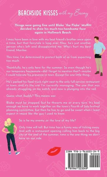 Things were going fine until Blake "the Flake" Moffitt decided to show his much-too-handsome face again in Hallmark Beach. I may have been in love with my best friend's brother once upon a time, but that fairytale is long over. Now, he's just another person who's left and disappointed me. Who's hurt my best friend, Marilee. This time, I'm determined to protect both of us from expecting too much. Thankfully, he's only here for the summer. So even though he's our temporary housemate-did I forget to mention that?-maybe I could tolerate his presence in town. Except for one little thing... He's parked his food truck right next to the only full-service restaurant in town... ...and it's the one I'm currently managing. The one that was already struggling on my watch, and now is plunging into the red. Guess what, buddy? This means war. Blake must be stopped, but he thwarts me at every turn. It's bad enough we have to work together on the town's Fourth of July festival planning committee, but then he has to go and be sweet when I least expect it-more like the guy I used to know. So is he my enemy...or the love of my life? Only time will tell. But time has a funny way of ticking away. And with a restaurant opening calling him back to the big city at the end of the summer, time is the one thing we don't have on our side. Perfect for fans of: ¿¿enemies to lovers ¿¿best friend's brother ¿¿temporary roommates ¿¿forced proximity ¿¿first love/crush ¿¿small-town romance Beachside Kisses With My Enemy is Book 2 in the new Hallmark Beach small town sweet romantic comedy series, where a charming yet quirky town on the coast of California comes to life. It's the story of restaurant manager Lucy Reynolds and her best friend's brother, chef Blake Moffitt. This dual-POV novel is filled with all the sizzling romantic tension and swoons possible without on-page intimacy.