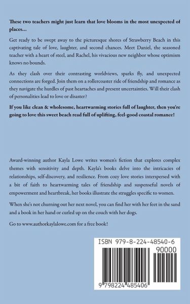 These two teachers might just learn that love blooms in the most unexpected of places... Get ready to be swept away to the picturesque shores of Strawberry Beach in this captivating tale of love, laughter, and second chances. Meet Daniel, the seasoned teacher with a heart of steel, and Rachel, his vivacious new neighbor whose optimism knows no bounds. As they clash over their contrasting worldviews, sparks fly, and unexpected connections are forged. Join them on a rollercoaster ride of friendship and romance as they navigate the hurdles of past heartaches and present uncertainties. Will their clash of personalities lead to love or disaster? If you like clean & wholesome, heartwarming stories full of laughter, then you're going to love this sweet beach read full of uplifting, feel-good coastal romance!