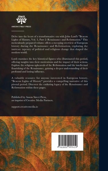 Delve into the heart of a transformative era with John Lord's "Beacon Lights of History, Vol. 3, Part 2: Renaissance and Reformation." This meticulously prepared volume offers a sweeping overview of European history during the Renaissance and Reformation, exploring the intricate tapestry of political and religious change that shaped the modern world. Lord examines the key historical figures who illuminated this period, offering insights into their motivations and the impact of their actions. Explore the religious upheavals of the Reformation and the intellectual flourishing of the Renaissance, gaining a deeper understanding of their profound and lasting influence. A valuable resource for anyone interested in European history, "Beacon Lights of History" provides a compelling narrative of this pivotal period. Discover the enduring legacy of the Renaissance and Reformation within these pages. This work has been selected by scholars as being culturally important, and is part of the knowledge base of civilization as we know it. This work is in the public domain in the United States of America, and possibly other nations. Within the United States, you may freely copy and distribute this work, as no entity (individual or corporate) has a copyright on the body of the work. Scholars believe, and we concur, that this work is important enough to be preserved, reproduced, and made generally available to the public. We appreciate your support of the preservation process, and thank you for being an important part of keeping this knowledge alive and relevant.
