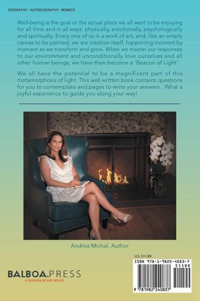 Well-being is the goal or the actual place we all want to be enjoying for all time and in all ways: physically, emotionally, psychologically and spiritually. Every one of us is a work of art, and, like an empty canvas to be painted, we are creation itself, happening moment by moment as we transform and grow. When we master our responses to our environment and unconditionally love ourselves and all other human beings, we have then become a 'Beacon of Light'. We all have the potential to be a magnificent part of this metamorphosis of light. This well written book contains questions for you to contemplate and pages to write your answers. What a joyful experience to guide you along your way!