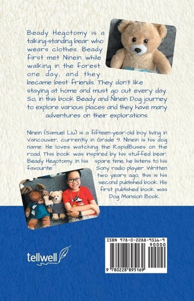Ninein (Samuel Liu) is a fifteen year-old boy living in Vancouver, currently in Grade 9. Ninein is his dog name. He loves watching the RapidBuses on the road. This book was inspired by his stuffed bear, Beady Hegotomy. In his spare time, he listens to his favourite Sony radio player. Written two years ago, this is his second published book. His first published book was Dog Mansion Book.