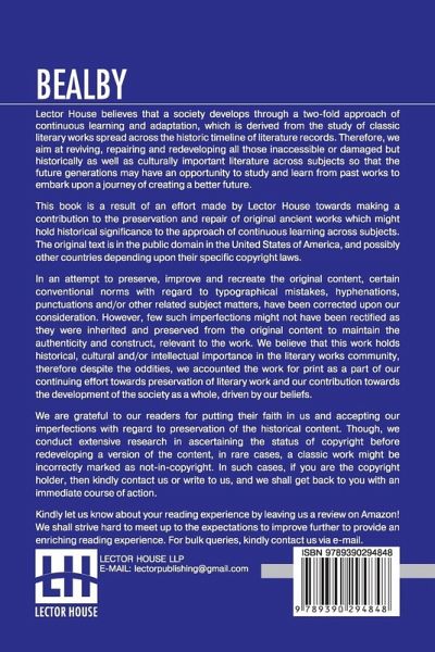 Bealby: A Holiday This book is a result of an effort made by us towards making a contribution to the preservation and repair of original classic literature. In an attempt to preserve, improve and recreate the original content, we have worked towards: 1. Type-setting & Reformatting: The complete work has been re-designed via professional layout, formatting and type-setting tools to re-create the same edition with rich typography, graphics, high quality images, and table elements, giving our readers the feel of holding a 'fresh and newly' reprinted and/or revised edition, as opposed to other scanned & printed (Optical Character Recognition - OCR) reproductions. 2. Correction of imperfections: As the work was re-created from the scratch, therefore, it was vetted to rectify certain conventional norms with regard to typographical mistakes, hyphenations, punctuations, blurred images, missing content/pages, and/or other related subject matters, upon our consideration. Every attempt was made to rectify the imperfections related to omitted constructs in the original edition via other references. However, a few of such imperfections which could not be rectified due to intentional\unintentional omission of content in the original edition, were inherited and preserved from the original work to maintain the authenticity and construct, relevant to the work. We believe that this work holds historical, cultural and/or intellectual importance in the literary works community, therefore despite the oddities, we accounted the work for print as a part of our continuing effort towards preservation of literary work and our contribution towards the development of the society as a whole, driven by our beliefs. We are grateful to our readers for putting their faith in us and accepting our imperfections with regard to preservation of the historical content. HAPPY READING!