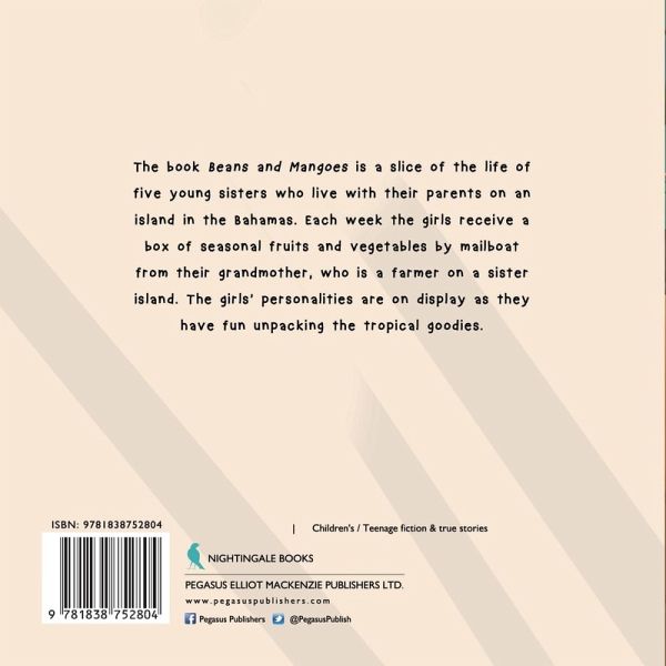 The book Beans and Mangoes is a slice of the life of five young sisters who live with their parents on an island in the Bahamas. Each week the girls receive a box of seasonal fruits and vegetables by mailboat from their grandmother, who is a farmer on a sister island. The girls' personalities are on display as they have fun unpacking the tropical goodies.