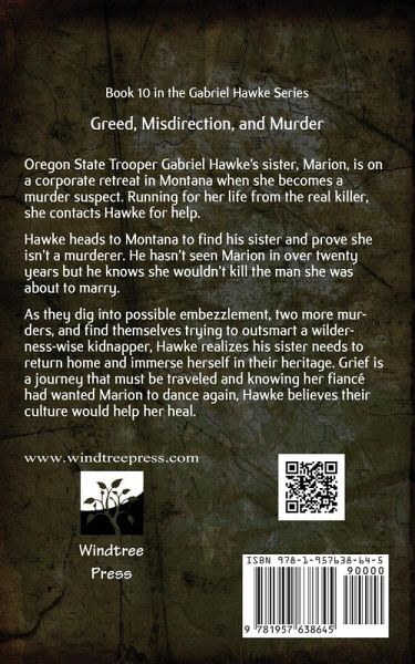 Book 10 in the Gabriel Hawke Series Greed, Misdirection, and Murder Oregon State Trooper Gabriel Hawke's sister, Marion, is on a corporate retreat in Montana when she becomes a murder suspect. Running for her life from the real killer, she contacts Hawke for help. Hawke heads to Montana to find his sister and prove she isn't a murderer. He hasn't seen Marion in over twenty years but he knows she wouldn't kill the man she was about to marry. As they dig into possible embezzlement, two more murders, and find themselves trying to outsmart a wilderness-wise kidnapper, Hawke realizes his sister needs to return home and immerse herself in their heritage. Grief is a journey that must be traveled and knowing her fiancé had wanted Marion to dance again, Hawke believes their culture would help her heal.