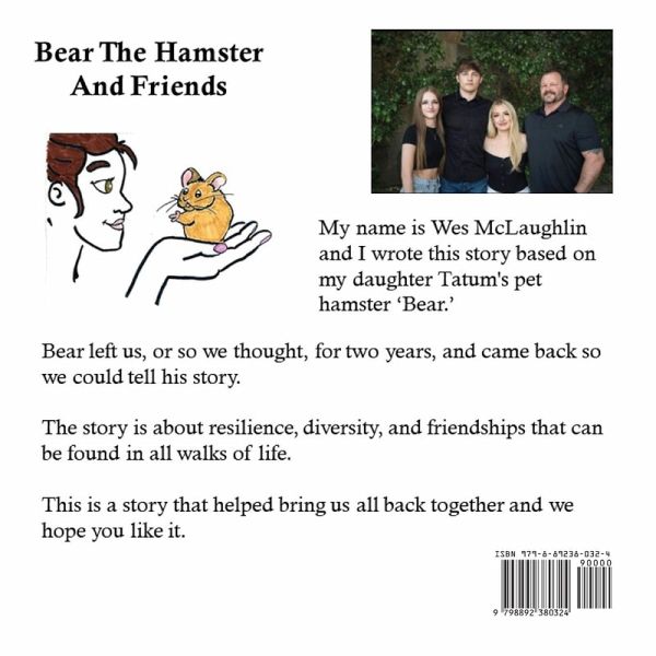 My name is Tatum. This is the true story of the adventures of Bear, my pet hamster. Well, most of it.. Bear left us, or so we thought, for two years, and came back so we could tell his story. The story is about resilience, diversity, and friendships that can be found in all walks of life. This is a story that helped bring us all back together and we hope you like it.
