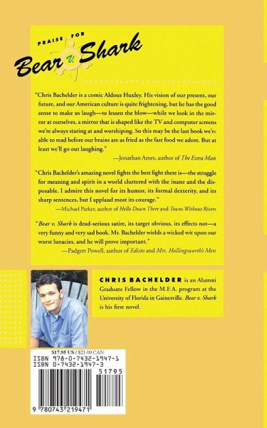 Given a relatively level playing field -- i.e., water deep enough so that a shark could maneuver proficiently but shallow enough so that a bear could stand and operate with its characteristic dexterity -- who would win in a fight between a bear and a shark? In this fiercely funny, razor-sharp satire of our media-saturated culture, the sovereign nation of Las Vegas is host to Bear v. Shark II. After a disappointing loss in the first computer-generated match-up, the bear is out for blood. With an essay entitled "Bear v. Shark: A Reason to Live," young Curtis Norman wins a national contest and four tickets to the sold-out event. As the Normans head cross-country in their SUV, they encounter a dizzying barrage of voices weighing in on the upcoming spectacle -- everyone from the Freudians, theologians, pundits, and self-published authors on the radio to the bear and shark fanatics, cultists, and resisters at pit stops along the way. Overwhelmed by factoids and ten-second debates, Mr. Norman grows ambivalent about the impending event and the family with whom he can't seem to connect. Still, the Normans push on to Vegas, toward an apocalyptic, surprisingly emotional ending.