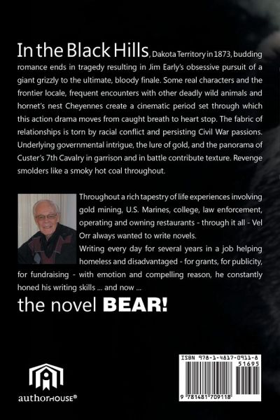 In the Black Hills, Dakota Territory in 1873, budding romance ends in tragedy resulting in Jim Early's obsessive pursuit of a giant grizzly to the ultimate, bloody finale. Some real characters and the frontier locale, frequent encounters with other deadly wild animals and hornet's nest Cheyennes create a cinematic period set through which this action drama moves from caught breath to heart stop. The fabric of relationships is torn by racial conflict and persisting Civil War passions. Underlying governmental intrigue, the lure of gold, and the panorama of Custer's 7th Cavalry in garrison and in battle contribute texture. Revenge smolders like a smoky hot coal throughout.