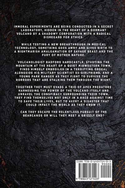 Immoral experiments conducted in a secret laboratory hidden in the heart of a dormant volcano by a shadowy corporation with a radical disregard for ethics. While testing a new breakthrough in medical technology, something goes awry and gives birth to a nightmarish amalgamation of savage beast and the fury of mother nature. Volcanologist Radford Hardcastle, studying the volcano at the heart of a quiet midwestern town, finds himself embroiled in a terrifying ordeal alongside his military scientist ex-girlfriend, and a young park ranger as they fight to survive the horrors that are stalking them through the night. Together they must evade a trio of apex predators harnessing the power of the volcano itself and unravel the conspiracy surrounding their town. They find themselves not only in a race against time to save themselves, but to avert a disaster that could impact the world as they know it. Can they escape the relentless pursuit of the Bearcanos or will they meet a grizzly end?