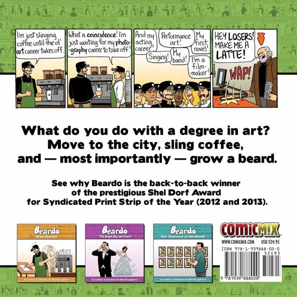 What do you do with a degree in art? Move to the city, sling coffee, and -- most importantly -- grow a beard. See why "Beardo" is the back-to-back winner of the prestigious Shel Dorf Award for Syndicated Print Strip of the Year (2012 and 2013). Beardo is the alter-ego of award-winning writer, artist, and musician Dan Dougherty. His comics career began in 2006 with the graphic novel Cyclone Bill and the Tall Tales. He's since illustrated dozens of books in multiple genres, including the children's books (Sam & The Jungle Band and You Got A Boogie), comic series (Touching Evil, also written by Dan), graphic novels (The Apocalypse Plan and Bob Howard: Plumber Of The Unknown) and the horror anthology Haunting Tales Of Horrorbles.