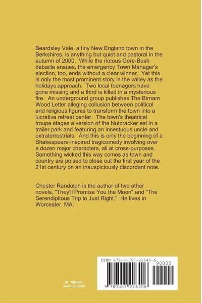 "Beardsley Vale" is a Shakespeare-inspired tragicomedy set in a tiny New England town in the fall and winter of 2000. Over a dozen major characters strut the political and theatrical stage of Beardsley Vale as the nation is deadlocked between Gore and Bush while the Town Manager election parallels the national crisis. Meanwhile numerous other dramas are playing out across town with characters and plots borrowed from King Lear, Romeo and Juliet, Macbeth and The Tempest.