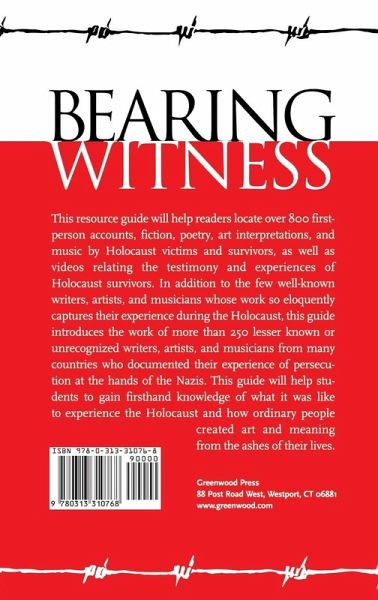 This resource guide will help readers locate over 800 first-person accounts, fiction, poetry, art interpretations, and music by Holocaust victims and survivors, as well as videos relating the testimony and experiences of Holocaust survivors. In addition to the few well-known writers, artists, and musicians whose work so eloquently captures their experience during the Holocaust, this guide will introduce the reader to the lives and work of more than 250 lesser known or unrecognized writers, artists, and musicians from many countries who documented their experience of persecution at the hands of the Nazis. This guide will help students gain firsthand knowledge of what it was like to experience the Holocaust and how ordinary people coped and created art and meaning from the ashes of their lives. The entry on each writer, artist, and musician features a biographical sketch and list of his or her works, with full bibliographic data. Entries on literature and videos are annotated and include recommendations for age-appropriateness. The work is divided into five parts: writers of memoirs, diaries and fiction; poets; artists; composers and musicians; and videos that feature testimony by survivors. Each part features an introductory overview of the artists and art created in that genre out of Holocaust experience. Title, artist/writer, and nationality indexes will help the reader select materials, and an index organized by age-appropriate levels will help teachers and librarians to select literature and videos for students.